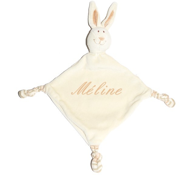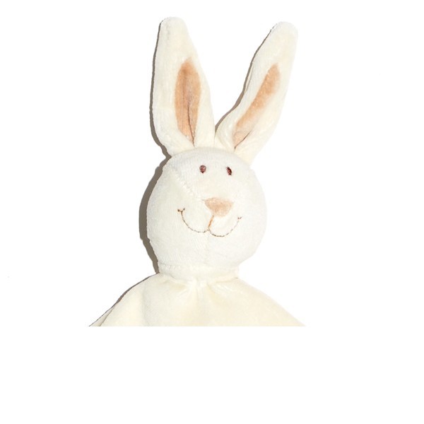 Le véritable doudou classique couleur blanc crème, celui que bébé pourra garder prêt de lui à tout instant. Orné d'une tête de lapin ce doudou est également composé d'un grand carré tout doux en velours.