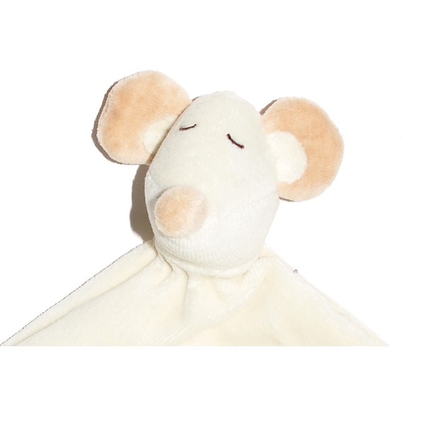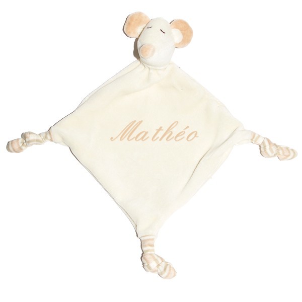 Le véritable doudou classique. La "souris dormeuse" et son grand carré de velours couleur crème.