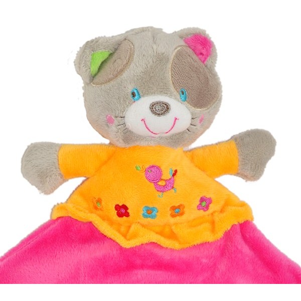 Miron, la petite chatte de la collection les Z'animos de la ferme. Ce doudou est extrêment doux. Ses couleurs très vives attireront le regard de bébé. Ses coins noués facilitent sa prise en main par l'enfant.